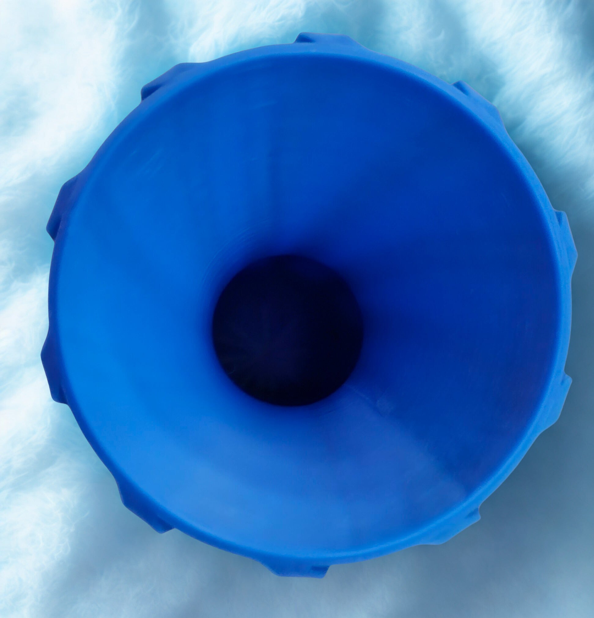 This beautifully crafted decorative vase is made of blue PLA material and is approximately 6 inches tall and approximately 4 inches wide. Handcrafted with a twisted detail design, this sturdy vase weighs approximately 10 ounces and is sure to be a unique addition to your home, office, or school.