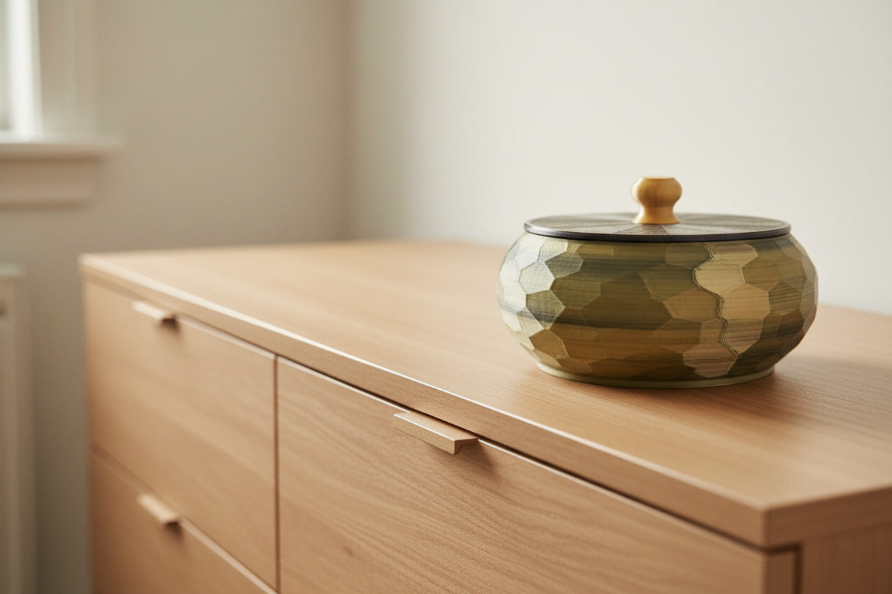 Here is another addition to our Jewelry Box Collection - Sculpted design. The box is a green/yellow/black color transition in silk PLA with gold knob. This versatile box is a great gift for kids, adults, teachers, friends, or colleagues.