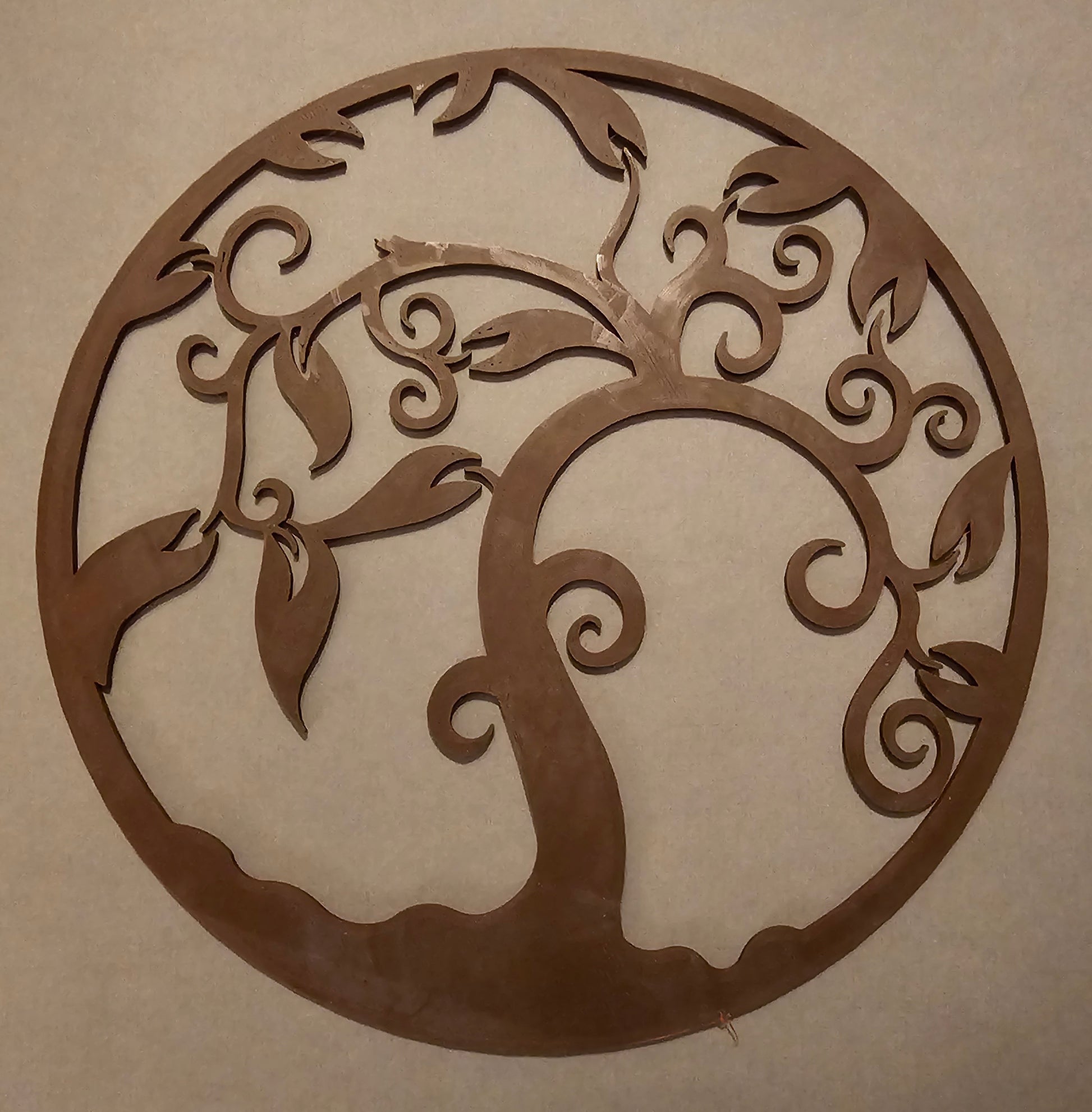 This Wall Art features a Tree of Life design in dark brown and is approximately 9 inches in diameter. It is lightweight and 3D crafted using PLA material. Suitable for any room, this piece can be cleaned with a damp cloth. Made in the United States, it adds an artistic touch to your home decor.