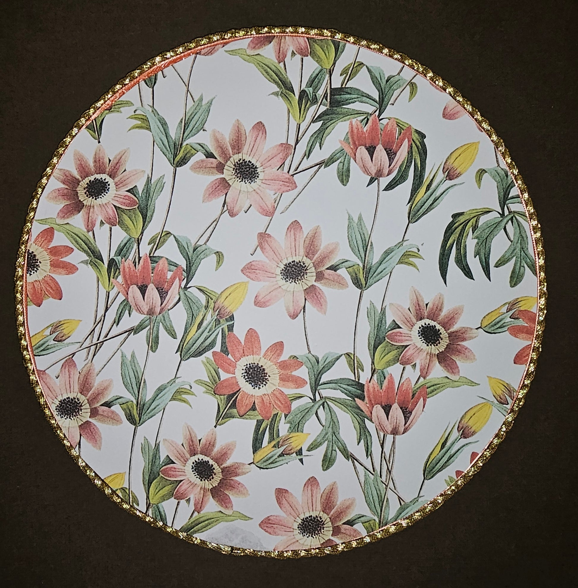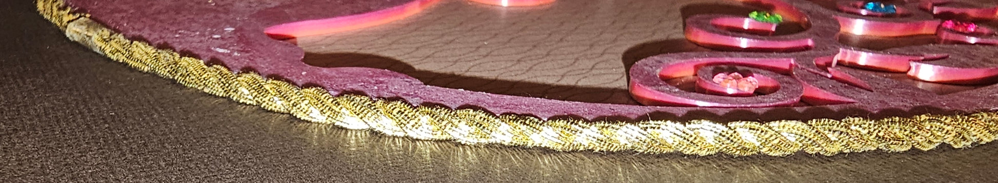 This Wall Art features a Tree of Life design in a purplish pink with a pink floral/tropical cardstock background. The tree features floral rhinestone embellishments and a gold rope accent edging.